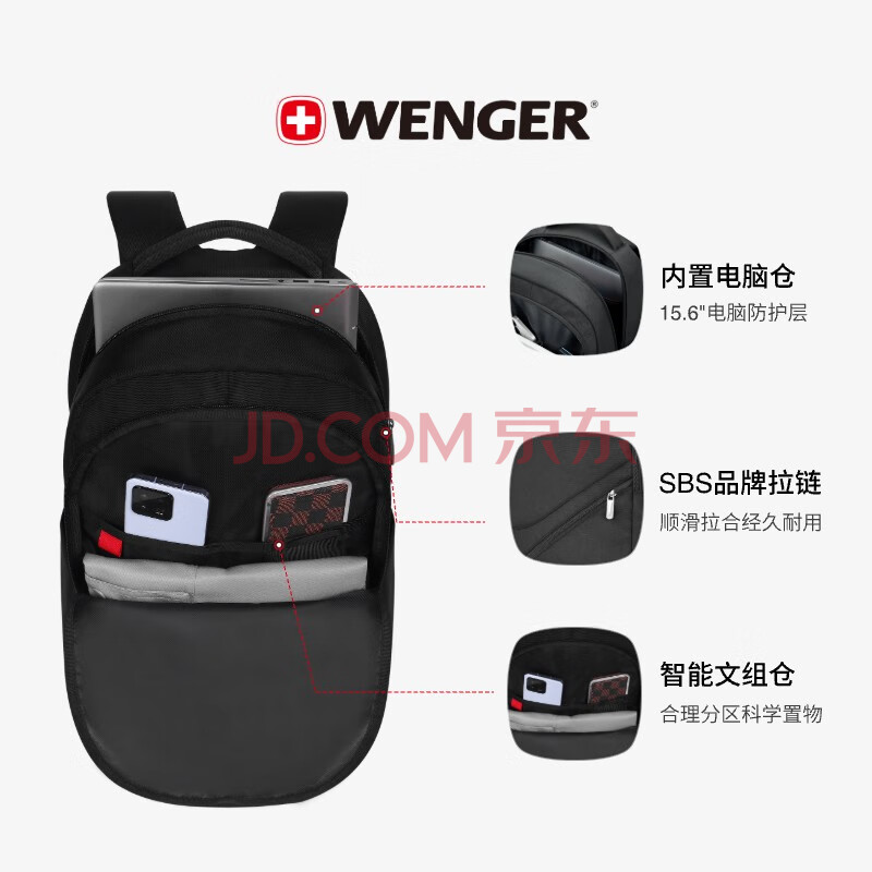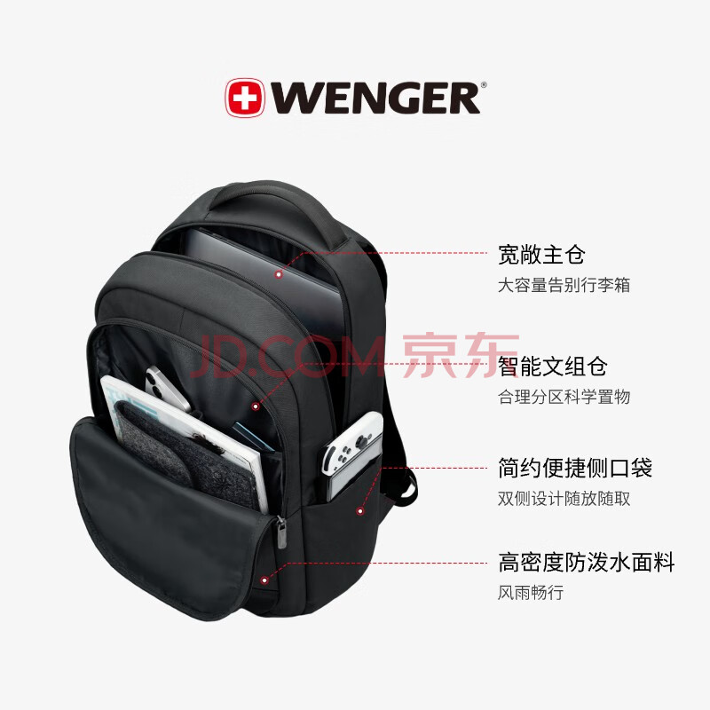 商品相册:威戈15.6英寸电脑包通勤双肩包背包书包旅行包男女黑色第