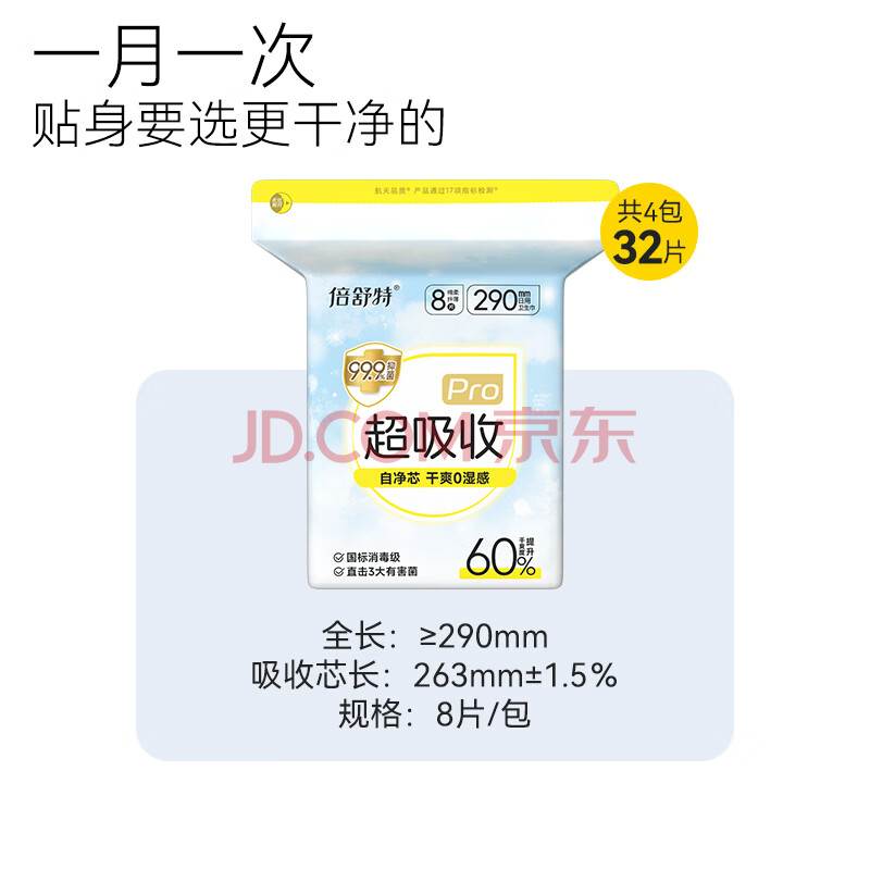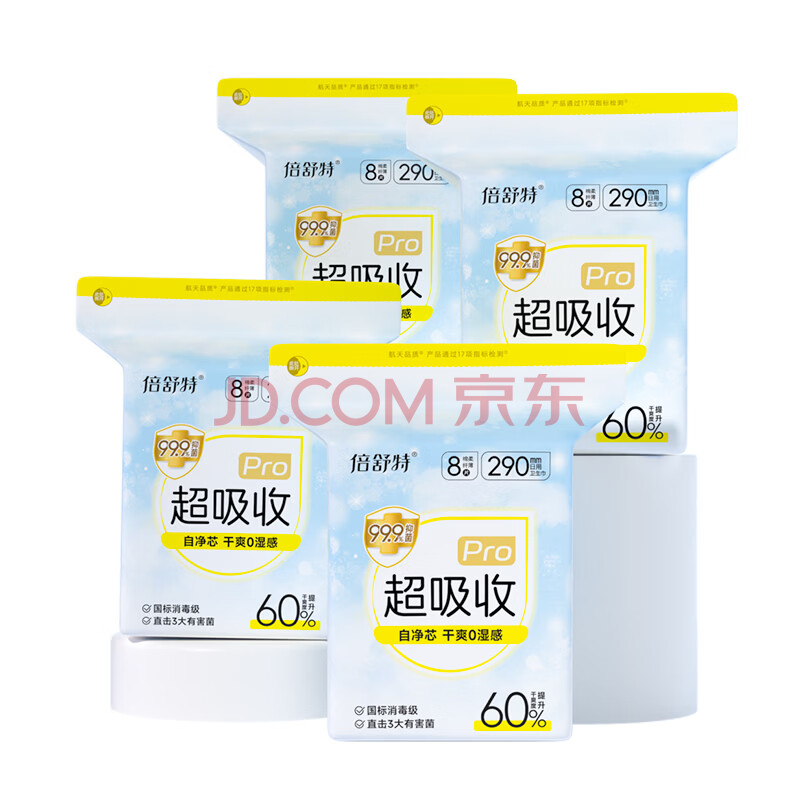 商品相册:倍舒特新国标认证超吸收棉柔卫生巾日用组合290mm32片 京东自营姨妈巾第
