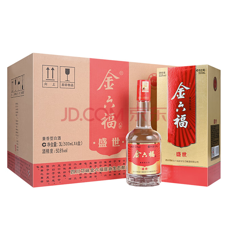 商品相册:金六福盛世 兼香型白酒 50.8度 500ml*6瓶 整箱装 收藏送礼第
