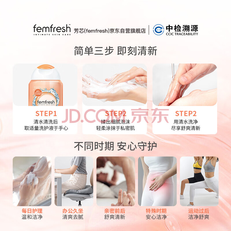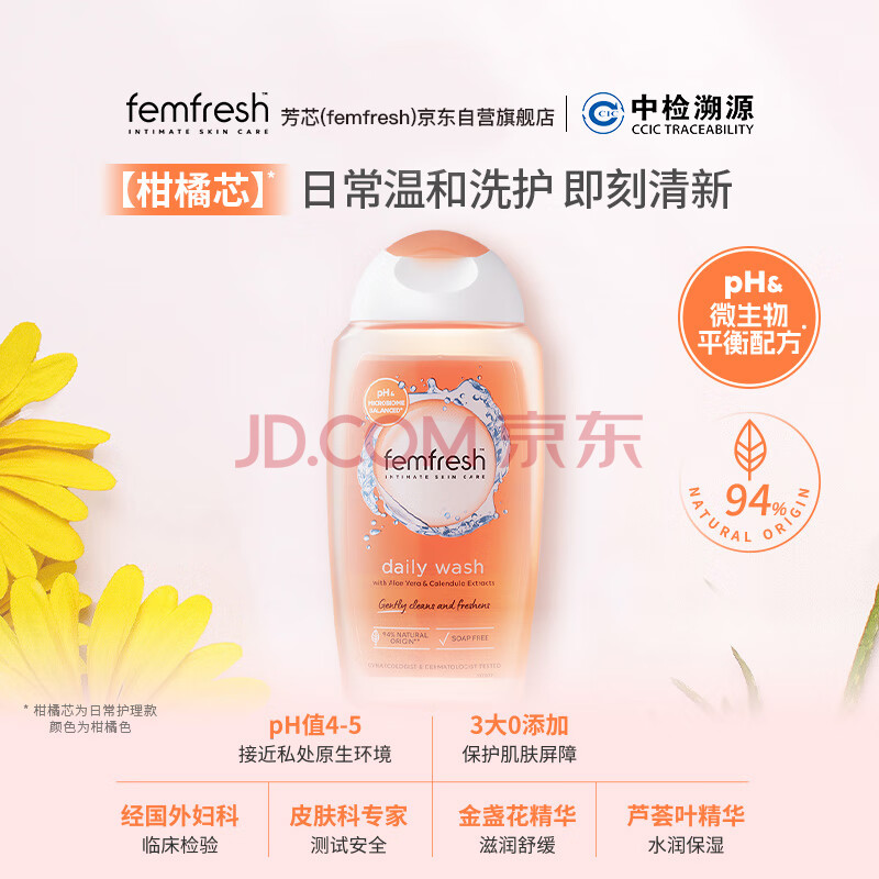 商品相册:femfresh【柑橘芯】日常清洁250mL 女性私密处护理清洁洗液 私处洗液第