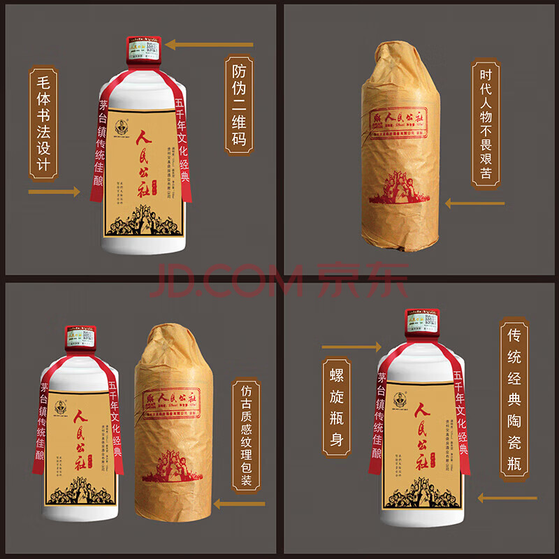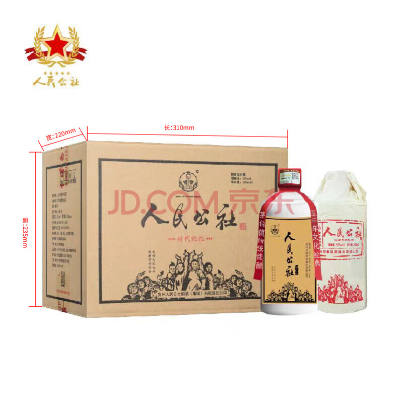 商品相册:人民公社 贵州茅台镇53度酱香型白酒纸包简装酒整箱6瓶 500ml/瓶第