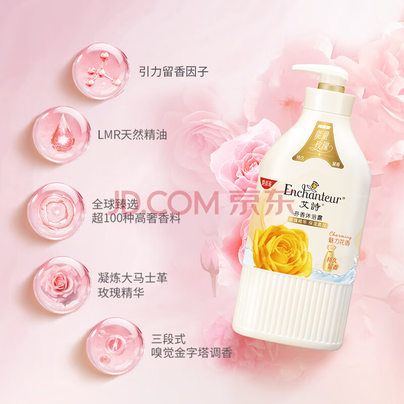 商品相册:艾诗(Enchanteur)沐浴露 玫瑰精华滋润保湿香水沐浴乳女 魅力花香650g第