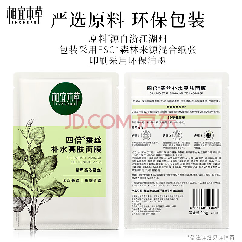 商品相册:相宜本草【张凌赫同款】四倍蚕丝补水保湿亮肤透润面膜套装30片礼物第