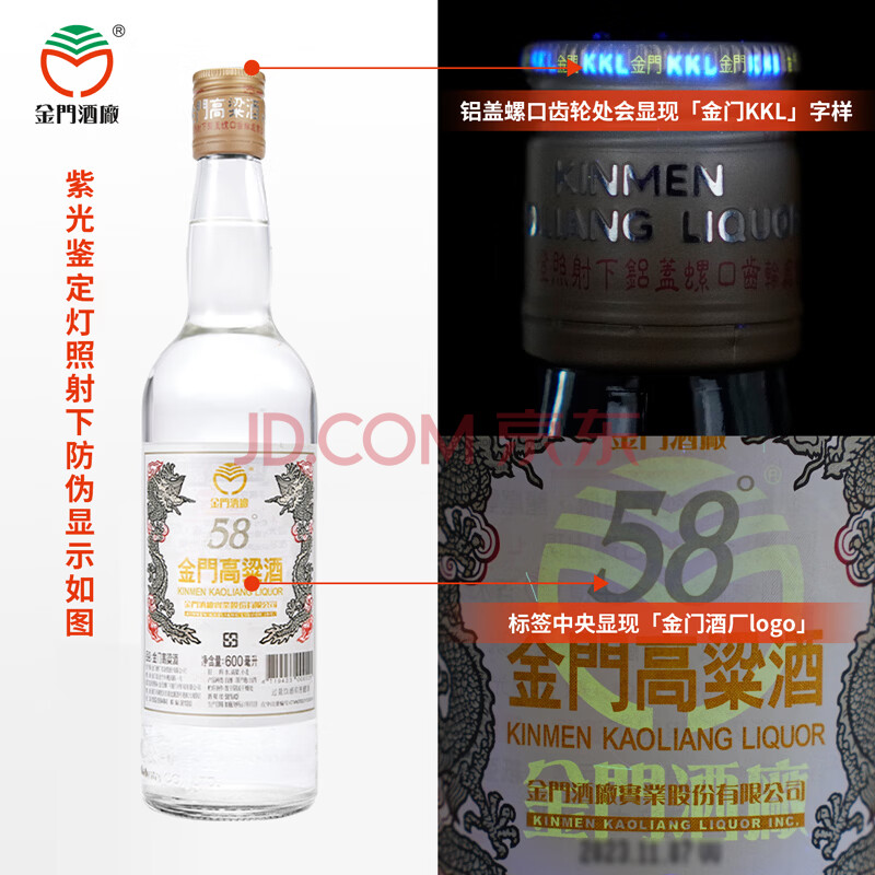 商品相册:金门高粱 双龙系列白金龙 清香型白酒 58度600ml 单瓶装 【宴请送礼】第