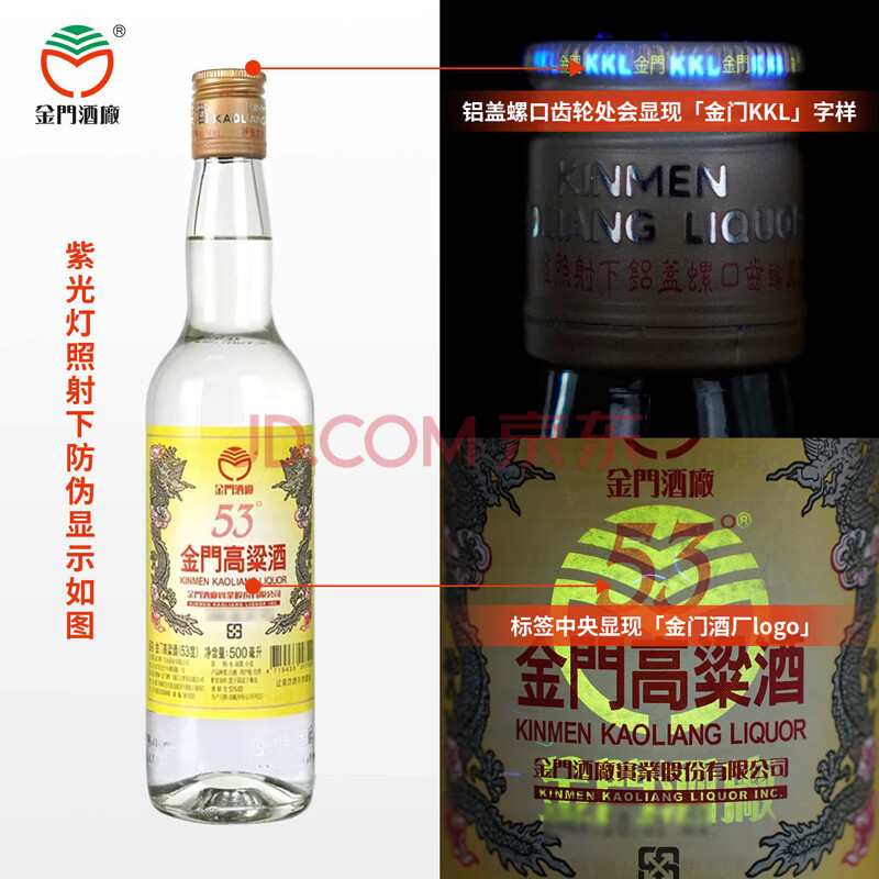 商品相册:金门高粱 双龙系列黄金龙 清香型白酒 53度500ml 单瓶装 【宴请招待送礼】第
