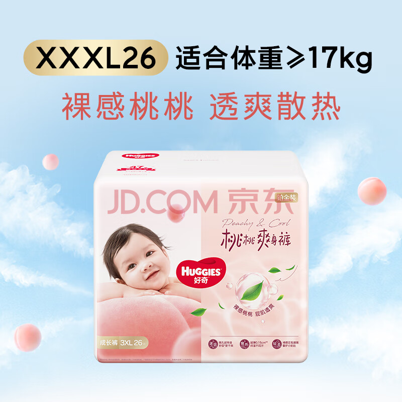 商品相册:好奇(Huggies)铂金装小桃裤拉拉裤XXXL26片(17kg以上)大码尿不湿【透爽散热】第