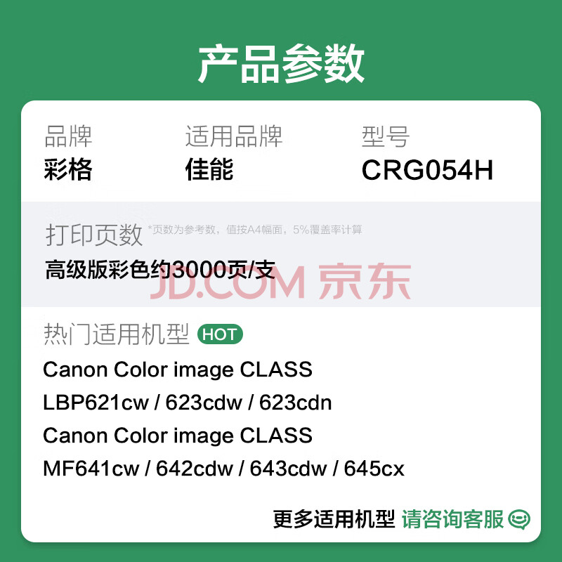 商品相册:彩格CRG054H适用佳能mf643cdw硒鼓CANON LBP623Cdn/w MF641Cw MF642cdw MF645Cx lbp621cw硒鼓054硒鼓红色第