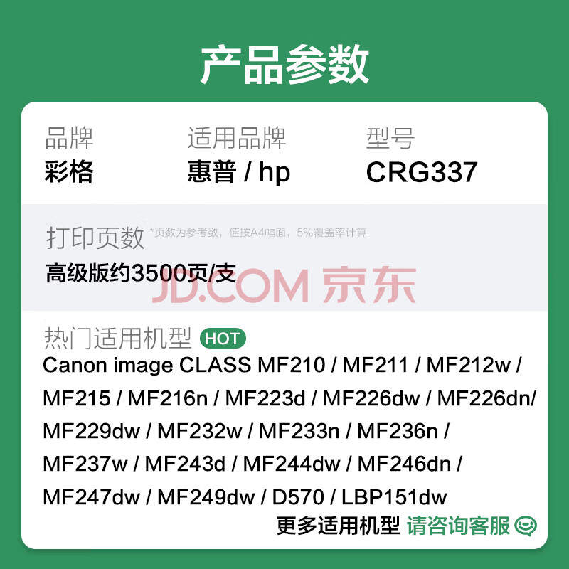 商品相册:彩格crg337硒鼓适用佳能mf243d硒鼓MF215 MF236n MF232w 212W lbp151dw打印机墨盒佳能mf211硒鼓第