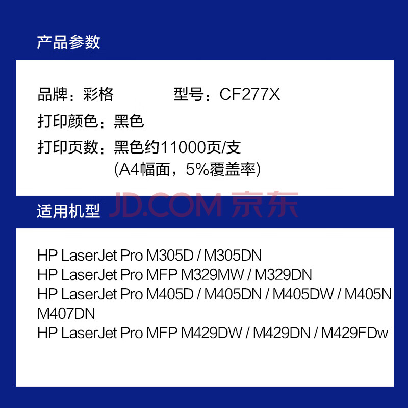 商品相册:彩格适用惠普m329dw硒鼓m405dn/dw m305d m405d硒鼓hpM429fdw/fdn m429dw打印机墨粉盒碳粉CF77X带芯片cf277a硒鼓第