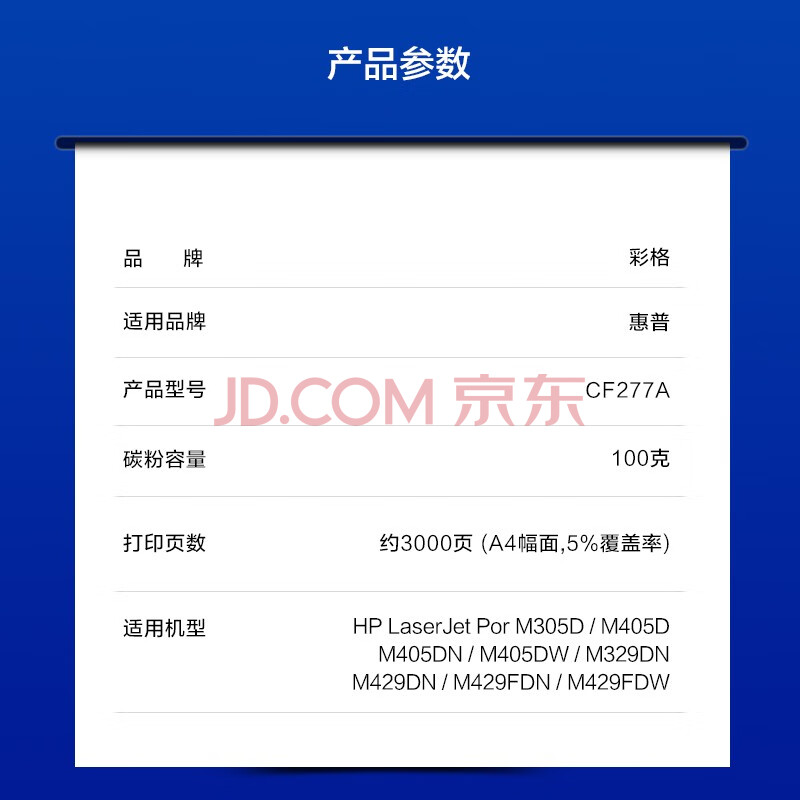 商品相册:彩格CF277A碳粉6支装 适用惠普HP M305d M405dn 405dw m429 m429fdn 429fdw 77A墨粉填充碳粉第