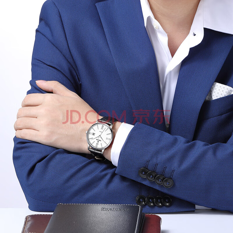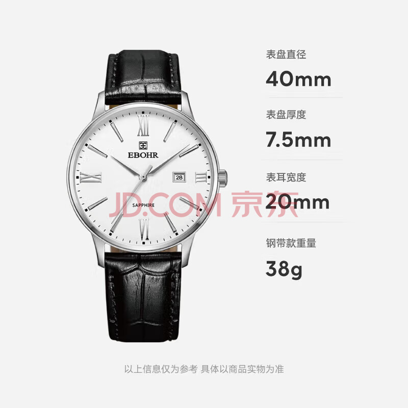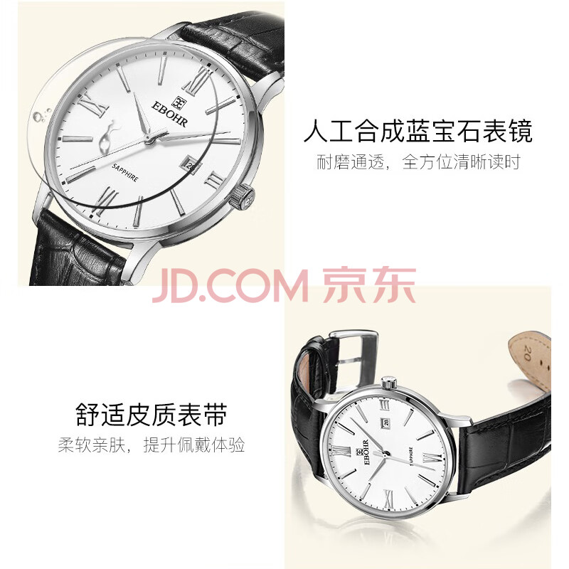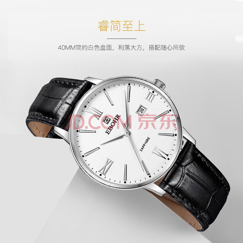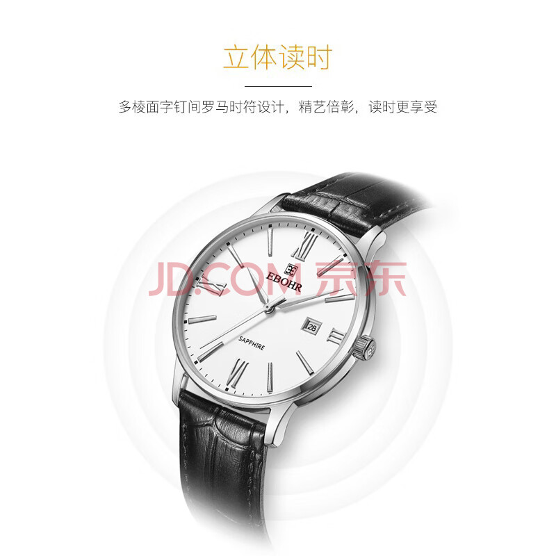 商品相册:依波(EBOHR)手表男 大师系列白面牛皮带石英男表生日节日礼物送男友36070138第