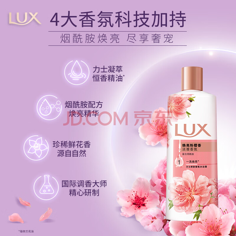 商品相册:力士(LUX)沐浴露 焕亮粉樱香 淡雅香氛 爽肤沐浴乳400g 留香第