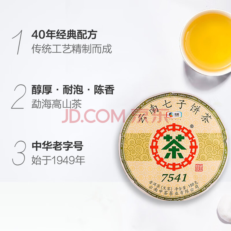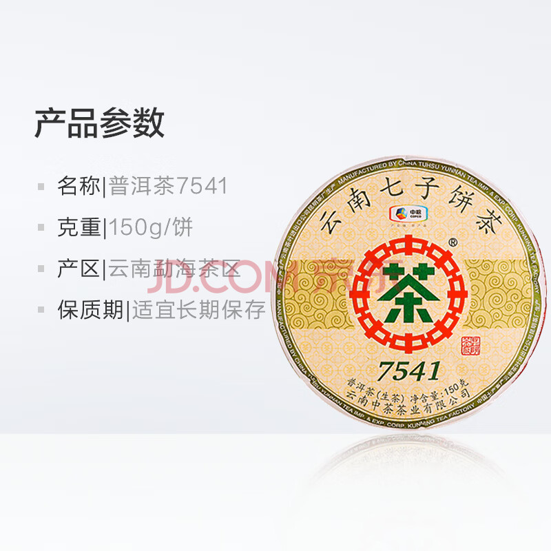 商品相册:中茶茶叶云南普洱茶云南七子饼茶7541小饼茶生茶150g盒装 中华老字号第