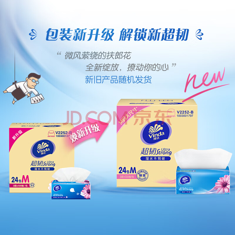 商品相册:维达(Vinda)抽纸 【孙颖莎推荐】超韧3层130抽*24包M码 新旧随机 整箱第