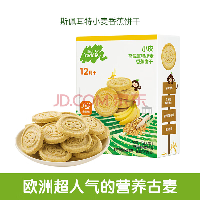 商品相册:小皮(Little Freddie)全谷物小麦饼干香蕉味 婴儿宝宝零食磨牙饼干儿童零食80g 1岁+第