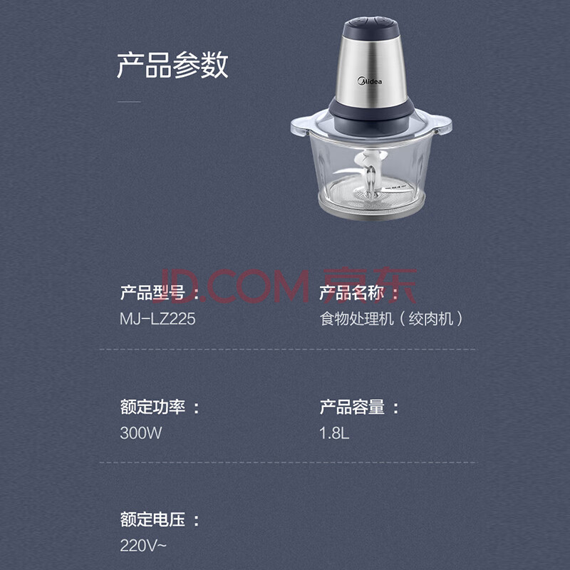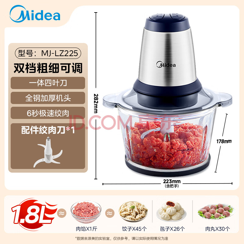 商品相册:美的(Midea)绞肉机家用绞馅机碎肉机电动多功能料理搅拌绞肉绞菜馅机打蒜器辅食搅肉机LZ25Easy225 约2L第1张/共8