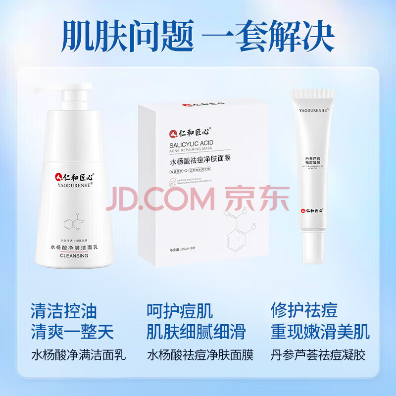 商品相册:仁和匠心控油祛痘套装 男女去黑头痘坑印 祛痘膏+水杨酸面膜+水杨酸洗面奶第1张/共9