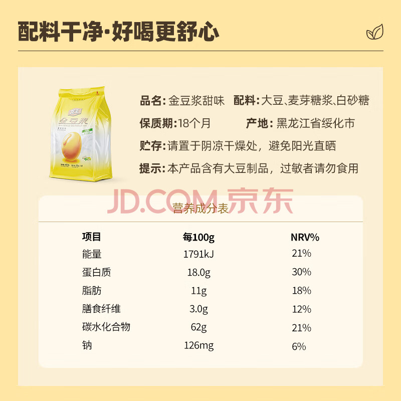 商品相册:龙王金豆浆粉甜味480克(30g*16条)纯早餐冲饮高蛋白可冷泡独立包装第