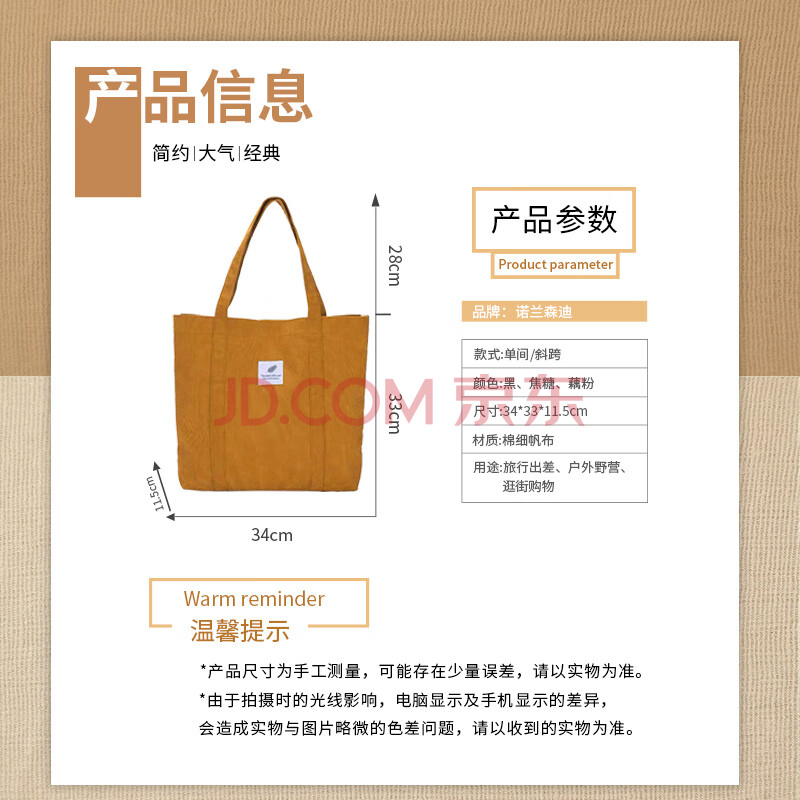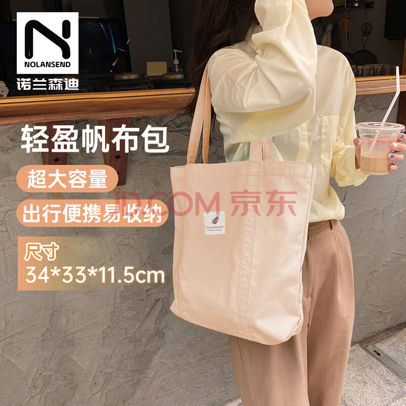 商品相册:诺兰森迪帆布包 大容量高级感帆布包手提袋旅行上班通勤外出帆布袋 焦糖色第