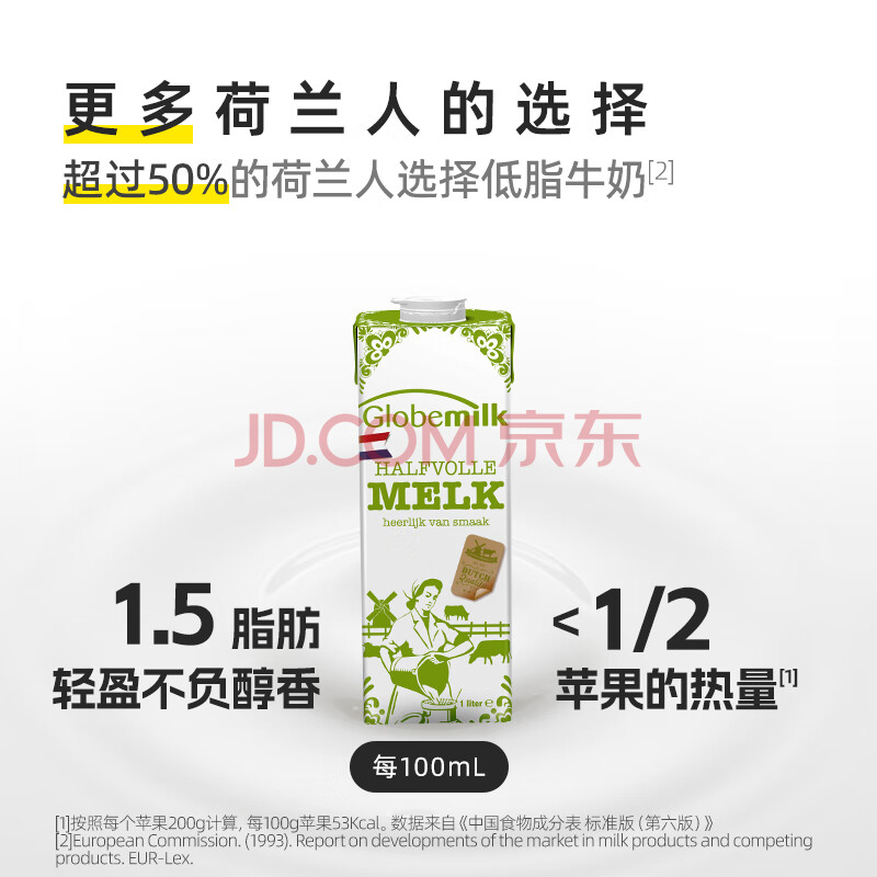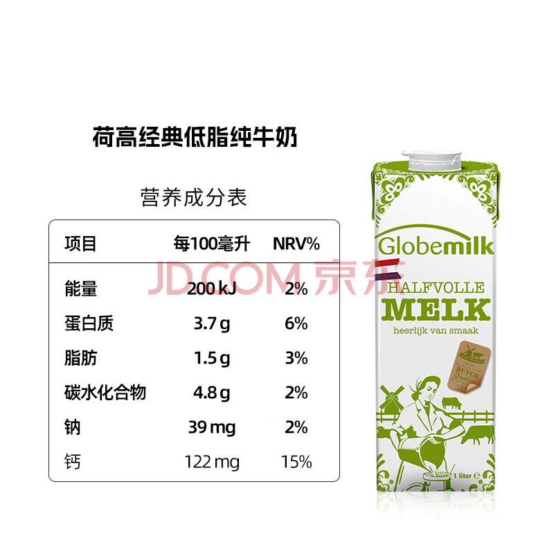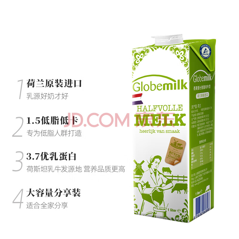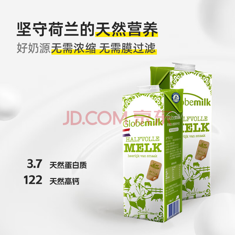 商品相册:荷高(Globemilk)部分脱脂纯牛奶1L*6 荷兰原装进口 低脂高钙第