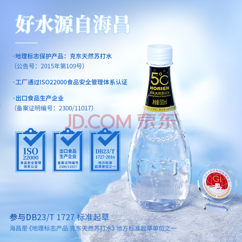 商品相册:5°C(HORIEN5°C)克东天然苏打水 500ml*12瓶 整箱装第