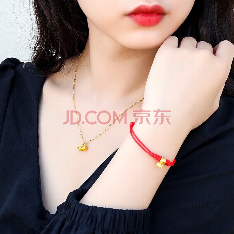商品相册:梦金园黄金转运珠好柿莲莲足金5D硬金莲蓬柿子本命年红绳手链第