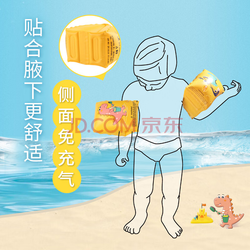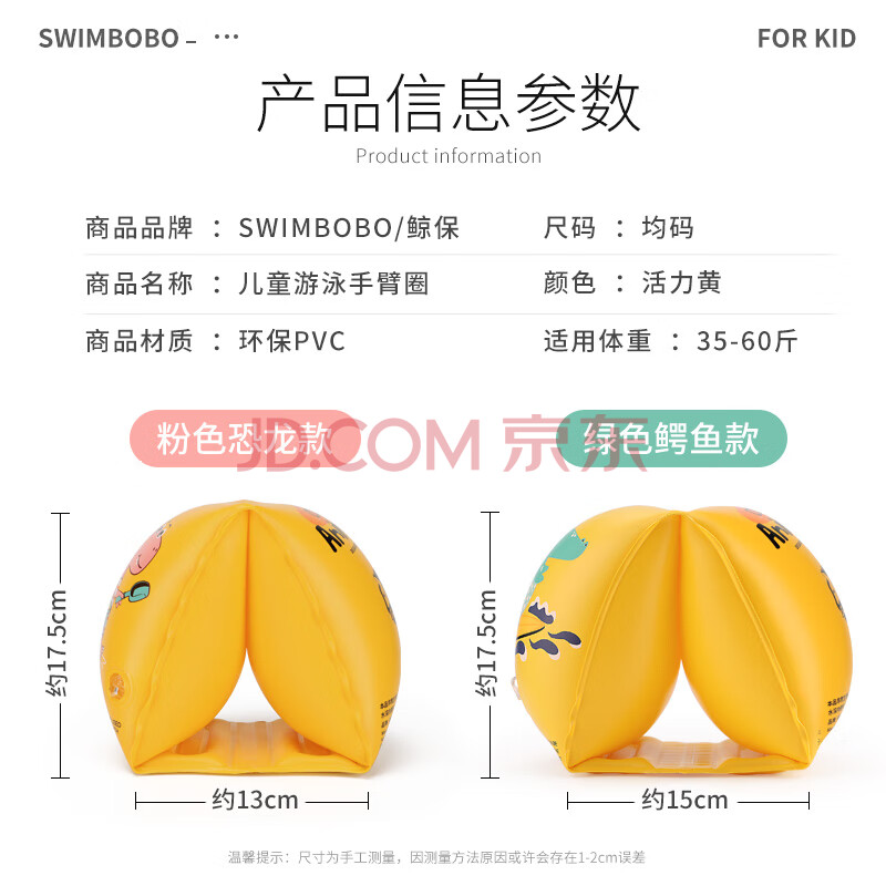商品相册:swimbobo儿童游泳手臂圈宝宝游泳圈水袖漂泳圈儿童游泳装备BO1100粉色恐龙第