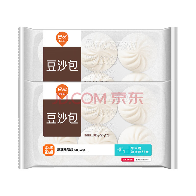 商品相册:巴比豆沙包 300g*2包 共12只 早餐包子馒头 生鲜面点开学季速冻第
