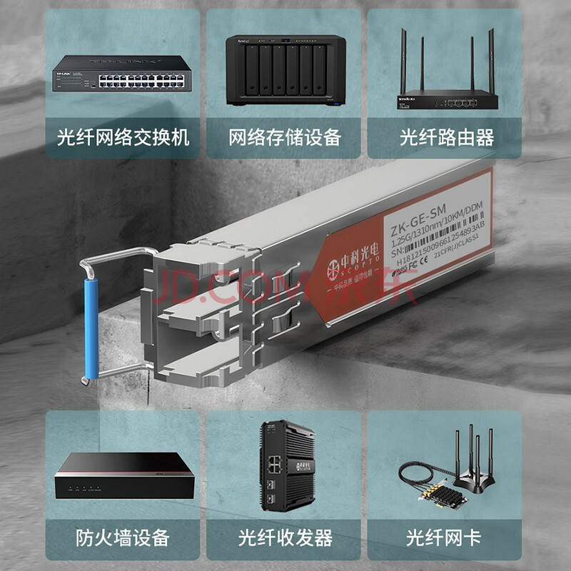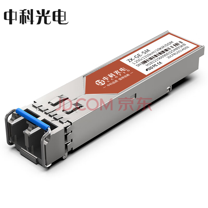 商品相册:中科光电 千兆光模块 SFP光模块 1.25G单模光模块 单模双纤 1310nm,10KM LC接口 一只 ZK-GE-SM第