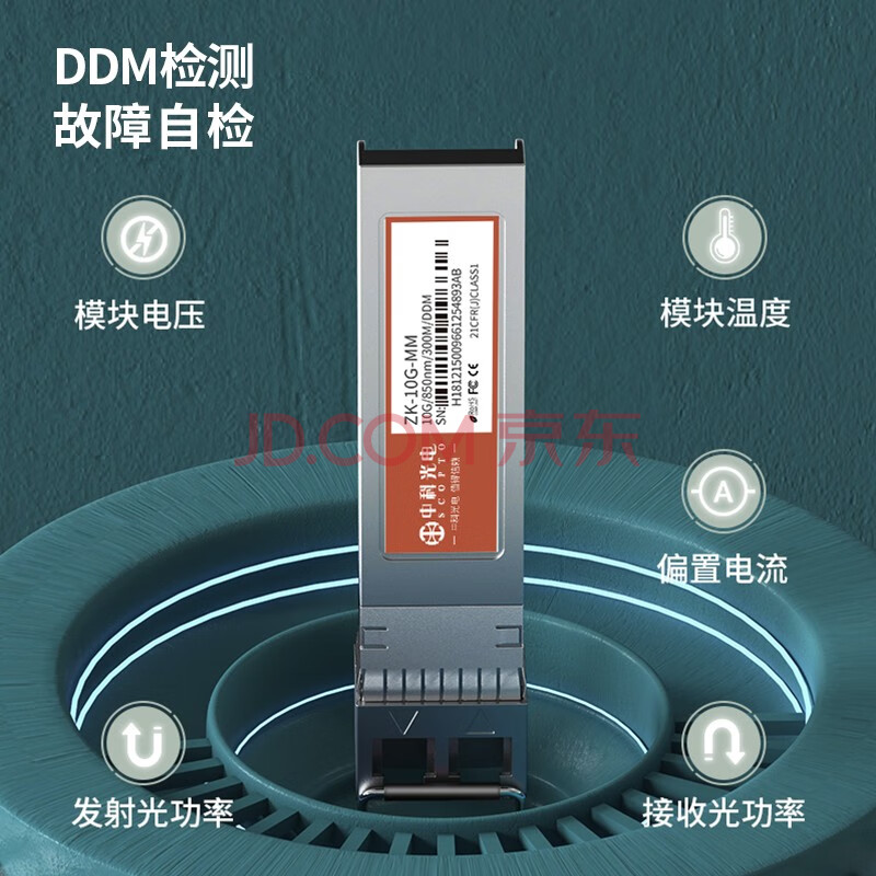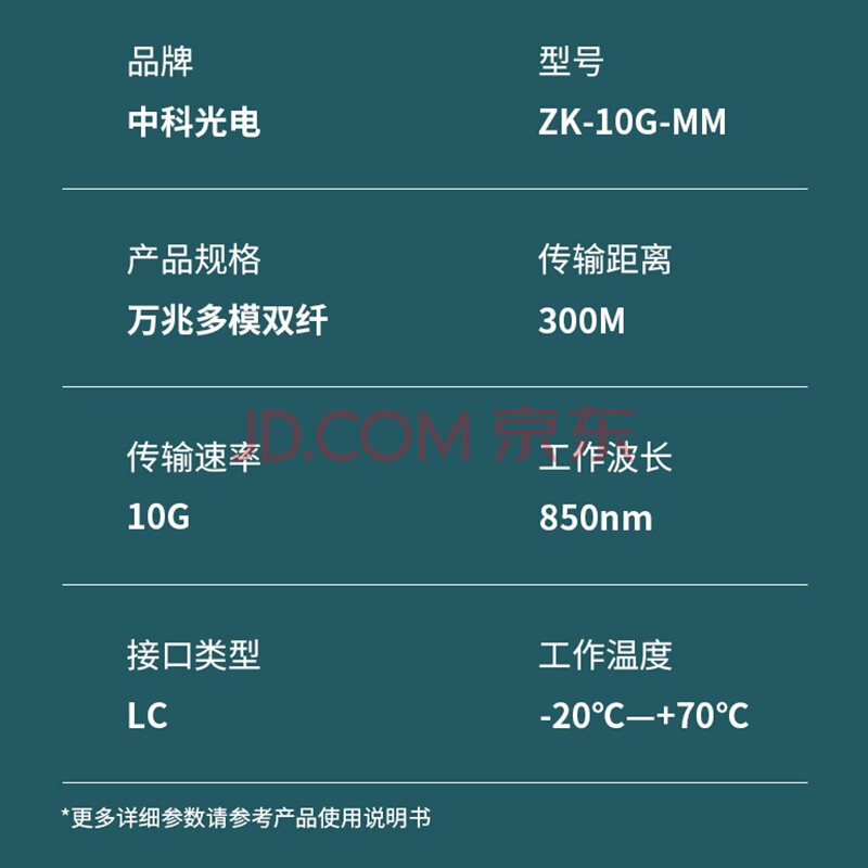 商品相册:中科光电 万兆光模块 10G光纤模块 万兆多模光模块 SFP+多模双纤 850nm,300M,LC接口 一只 ZK-10G-MM第
