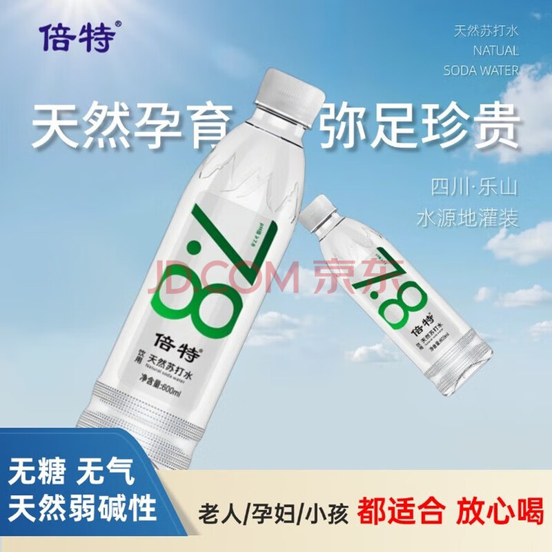 商品相册:倍特 天然苏打水 600ml*24瓶 弱碱性高端饮用 零糖零脂零添加 整箱第