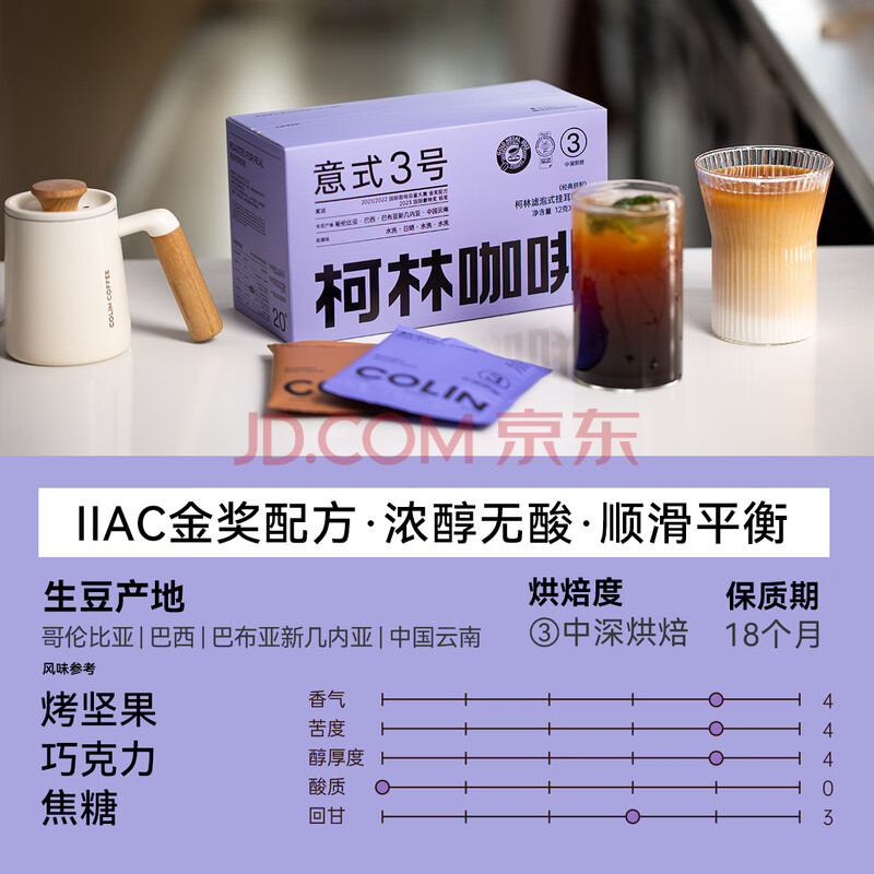 商品相册:柯林咖啡挂耳咖啡精品黑咖啡特浓无酸手冲式咖啡粉 3号意式特浓12g*20袋第