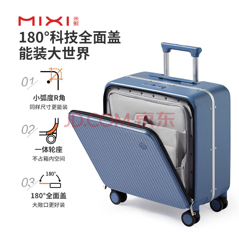 商品相册:米熙前开盖铝框箱拉杆箱子行李箱密码箱包男旅行登机箱18英寸宝石蓝70第