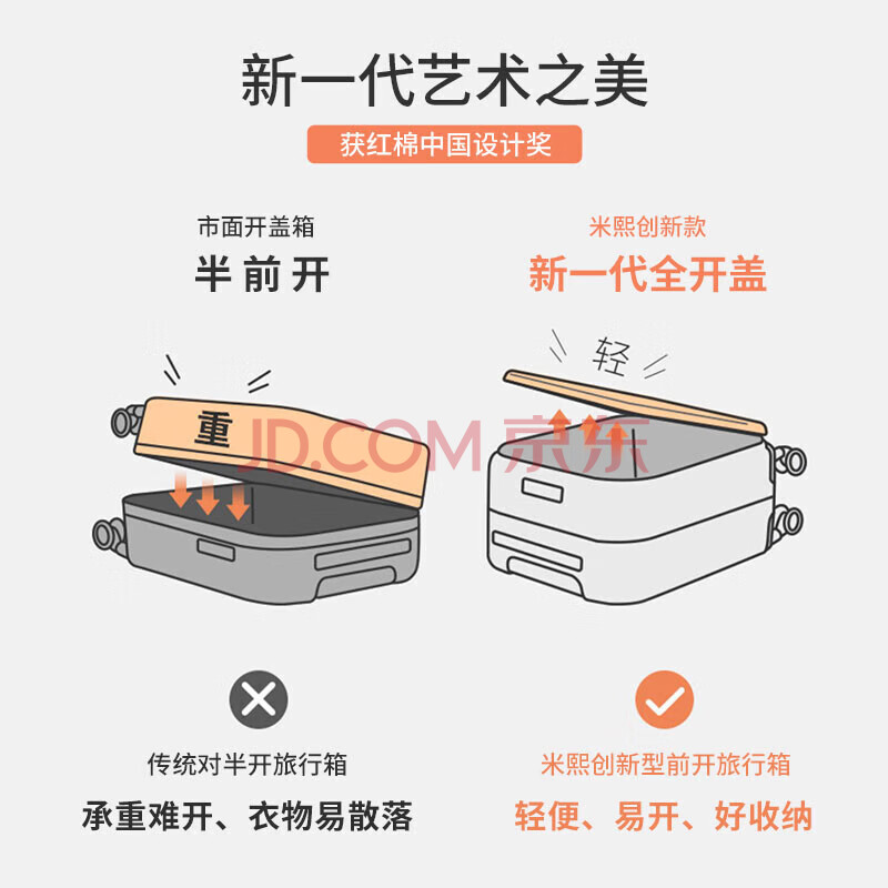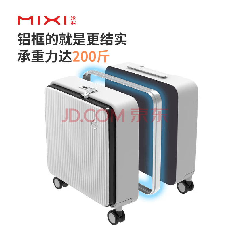 商品相册:米熙前开盖铝框拉杆箱子行李箱男旅行箱女密码箱包登机箱18英寸烟白70第