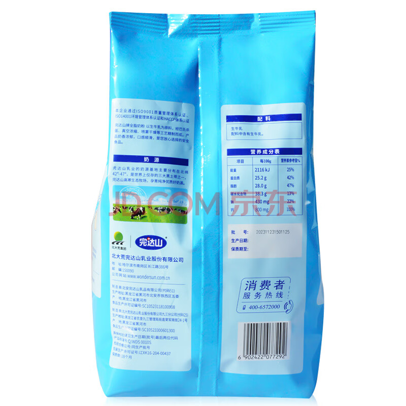 商品相册:完达山全脂奶粉1kg成人奶粉高钙高蛋白0添加白砂糖学生全家奶粉冲饮烘焙第