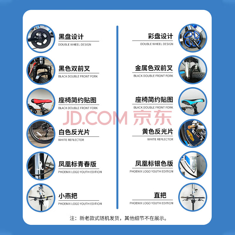 商品相册:凤凰(Phoenix)儿童自行车山地车男女学生脚踏车6-15岁童车 霸道 白蓝色 22寸第