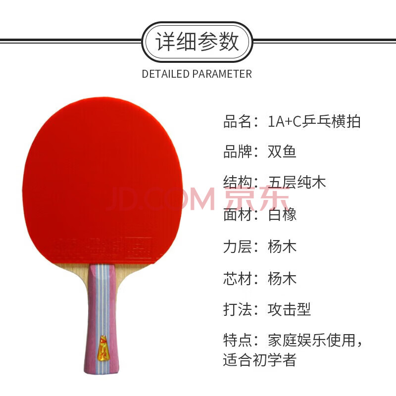 商品相册:双鱼(DOUBLE FISH)横拍入门级小学生初学者娱乐专用双面反胶乒乓球拍【1A+C 附2球】第