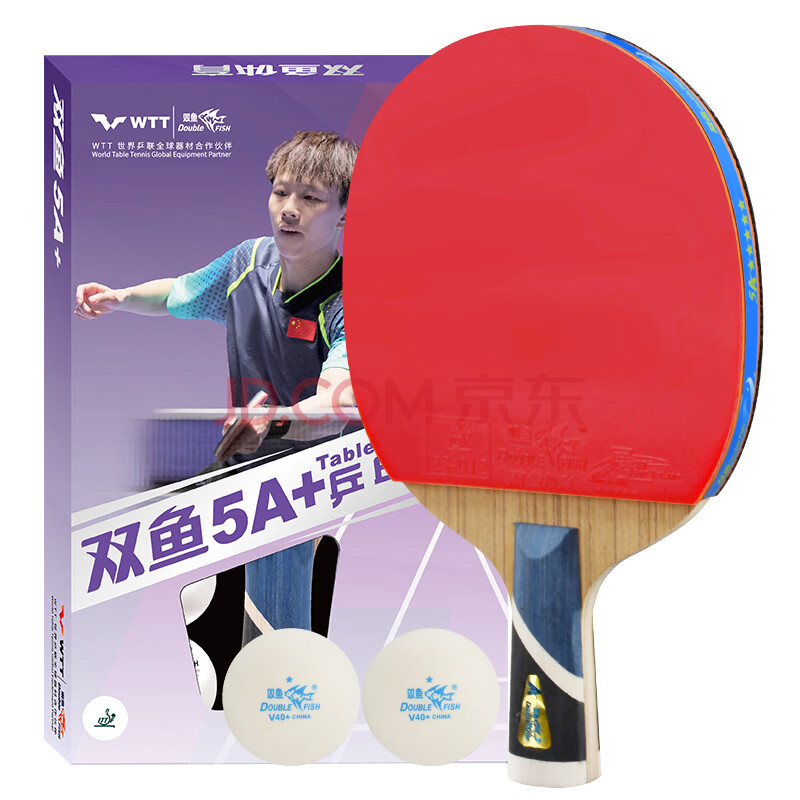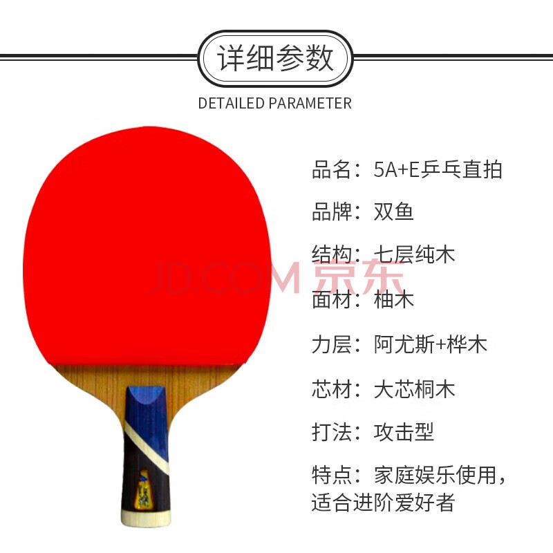 商品相册:双鱼(DOUBLE FISH)单拍直拍短柄初学比赛训练专用乒乓球拍双面反胶【5A+E 附2球】第