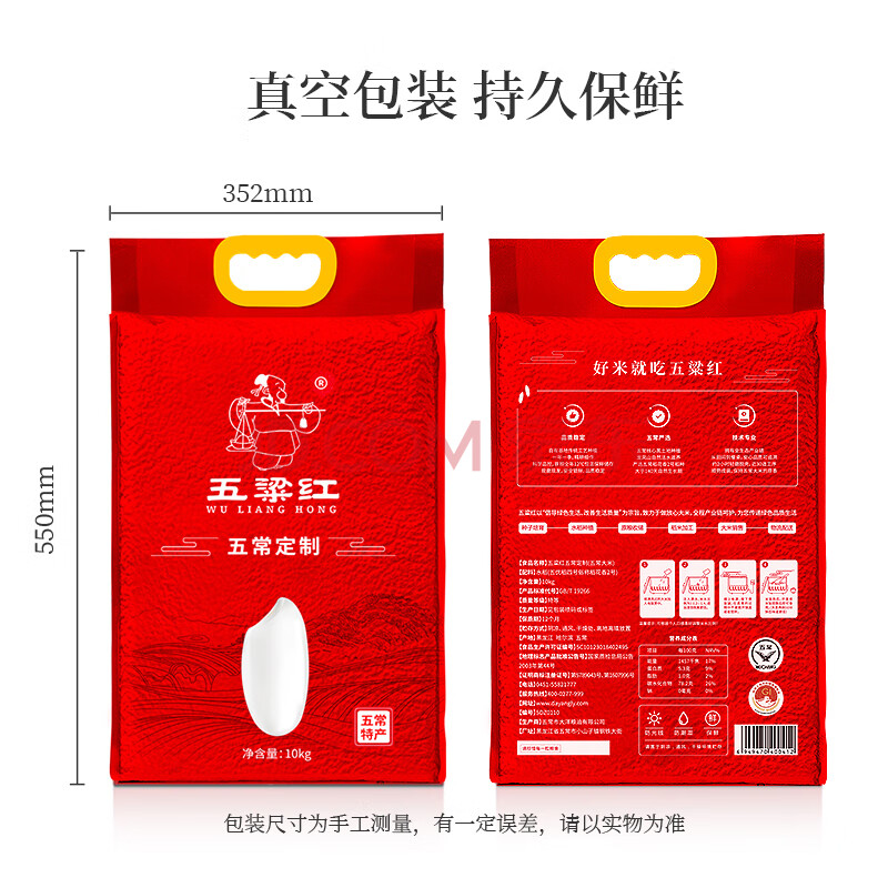商品相册:五粱红当季新米【特等五常大米20斤】原粮稻花香2号 东北大米10kg真空第