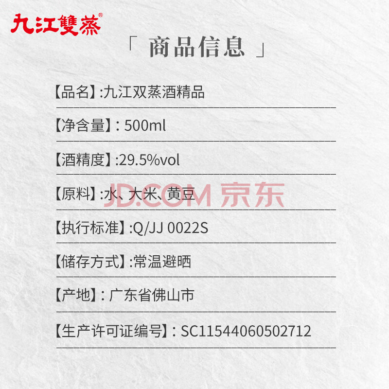 商品相册:九江双蒸豉香型白酒 双蒸系列精品出口 29.5度500ml口粮酒广东米酒自饮第1张/共7
