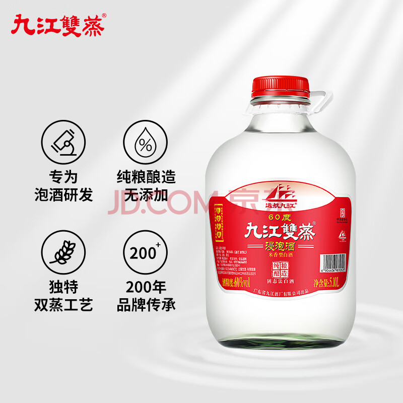 商品相册:九江双蒸米香型白酒 自饮泡酒米酒60度桶装纯粮食酒5.1L散酒药材养生泡酒第