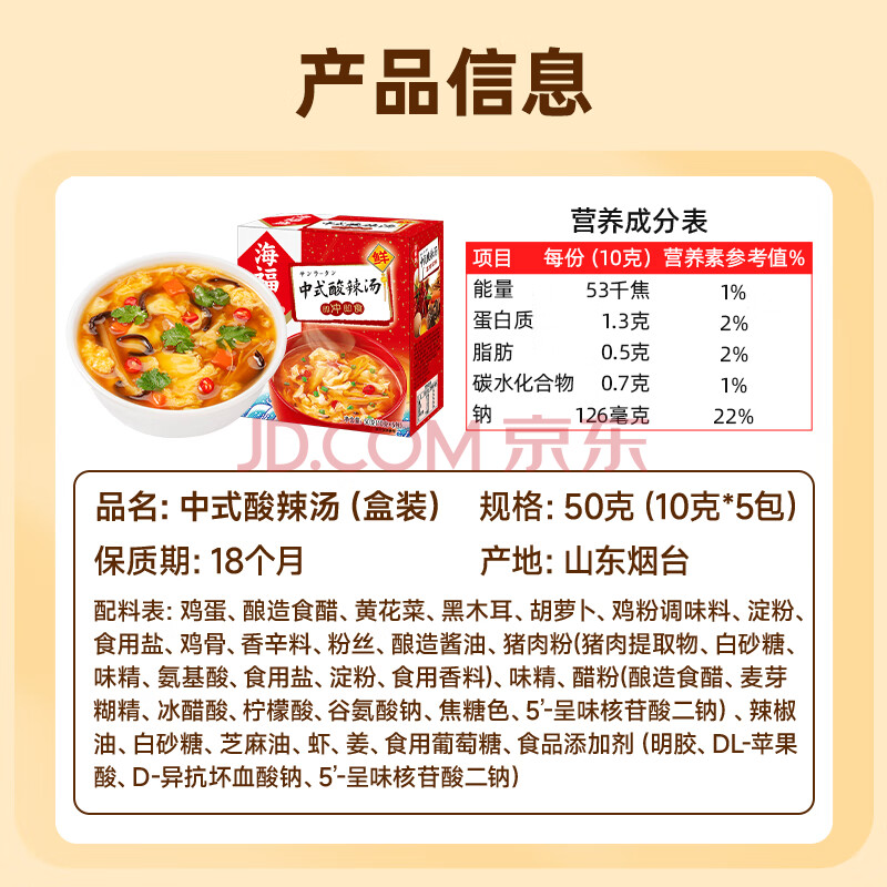 商品相册:海福盛方便食品速食汤即冲即食懒人早餐FD冻干汤中式酸辣汤10g*5袋第