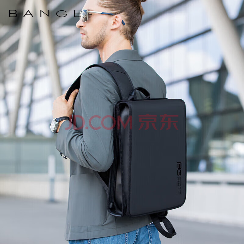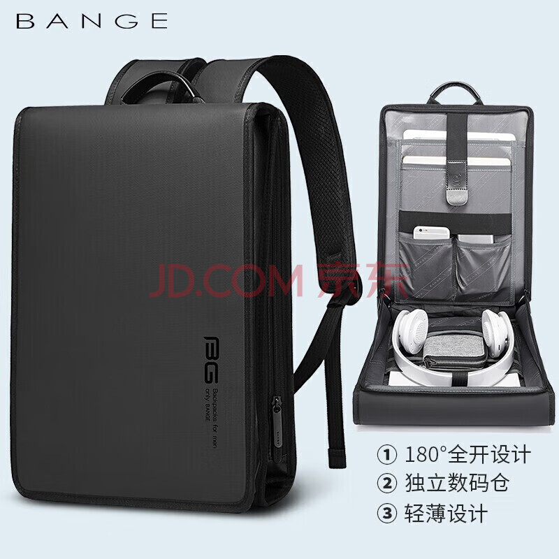 商品相册:班歌超薄14英寸电脑包简约书包时尚轻便双肩包通勤双肩背包男7252黑第