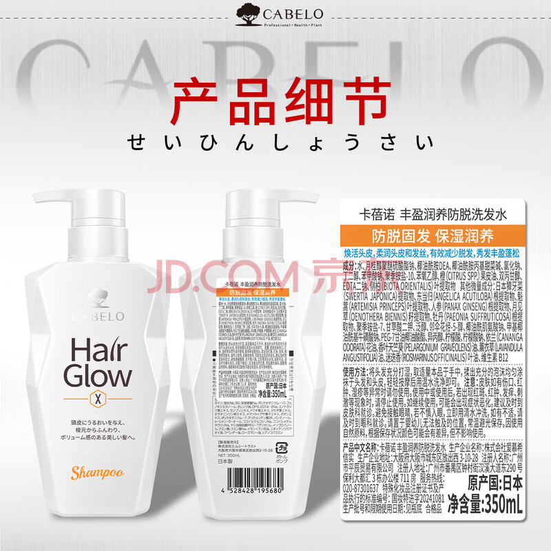 商品相册:卡蓓诺(CABELO)日本进口 丰盈润养防脱发洗发水350ml【新防脱备案】蓬松保湿第