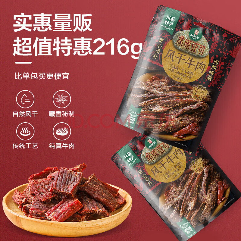 商品相册:棒棒娃 超干手撕牛肉干麻辣味216g 量贩装休闲肉脯零食特产大礼包第1张/共7