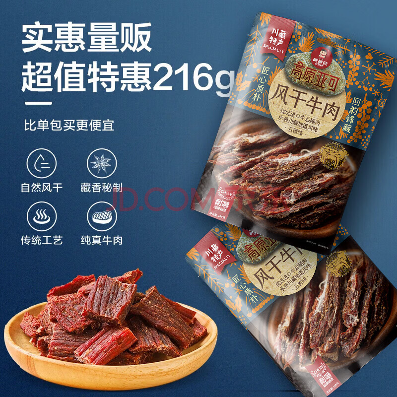 商品相册:棒棒娃 超干手撕牛肉干五香味216g 量贩装休闲肉脯零食特产大礼包第