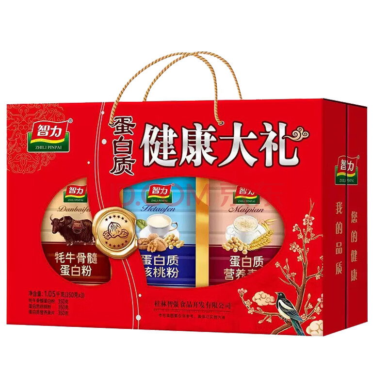 商品相册:智力蛋白质健康大礼1050g/盒(350g*3罐)五谷代餐粉长辈送礼佳品第