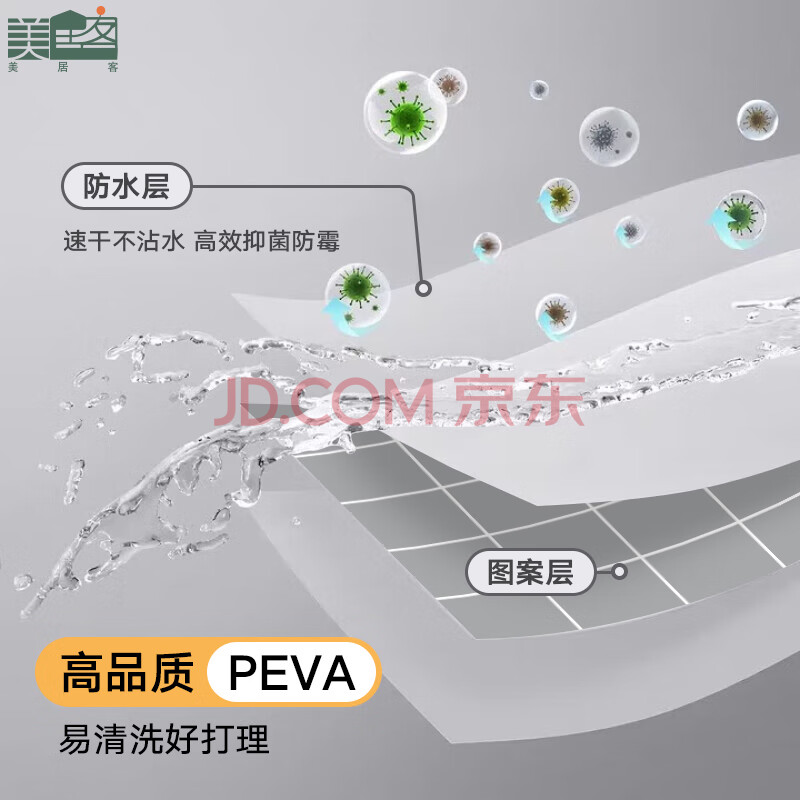 商品相册:美居客浴帘 浴室遮挡帘 浴室防水帘 窗帘浴室隔断帘 北欧雅灰150*180CM第