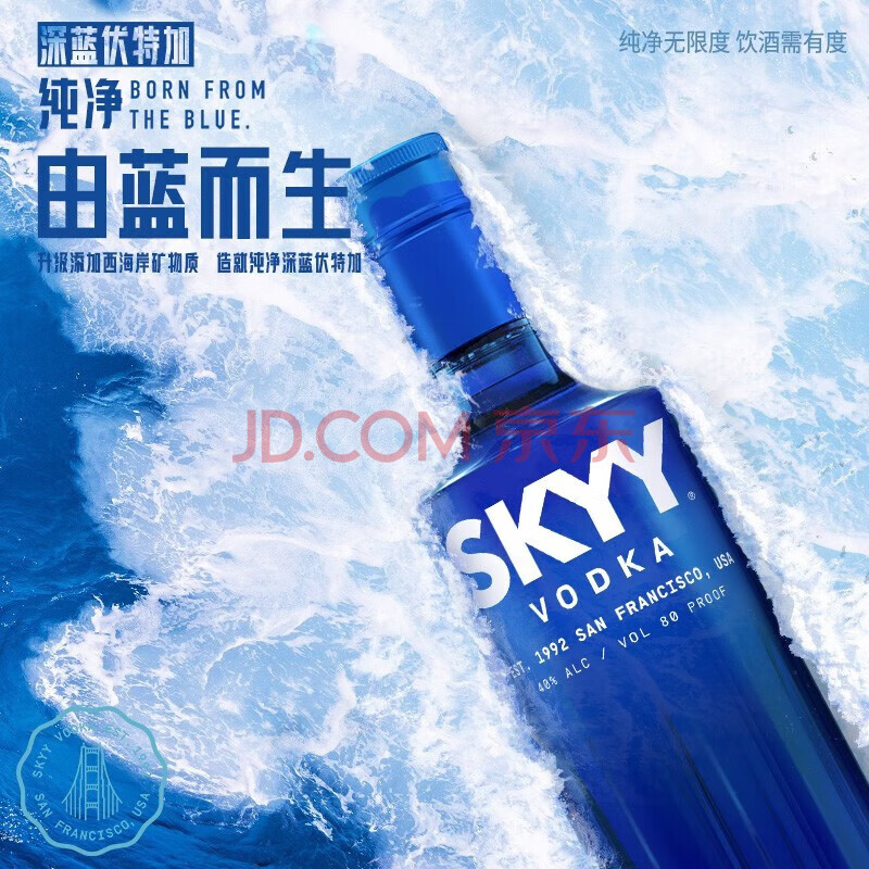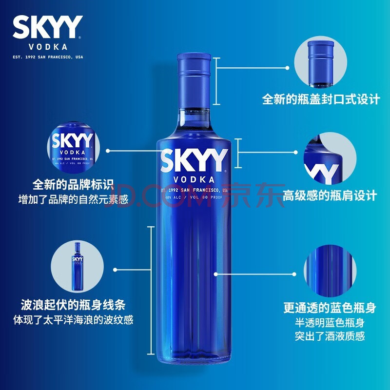 商品相册:深蓝(SKYY) 伏特加VODKA蓝天伏特加 进口基酒 750ML 新版 送礼第1张/共7
