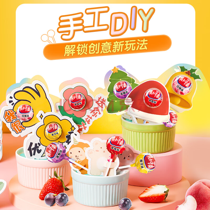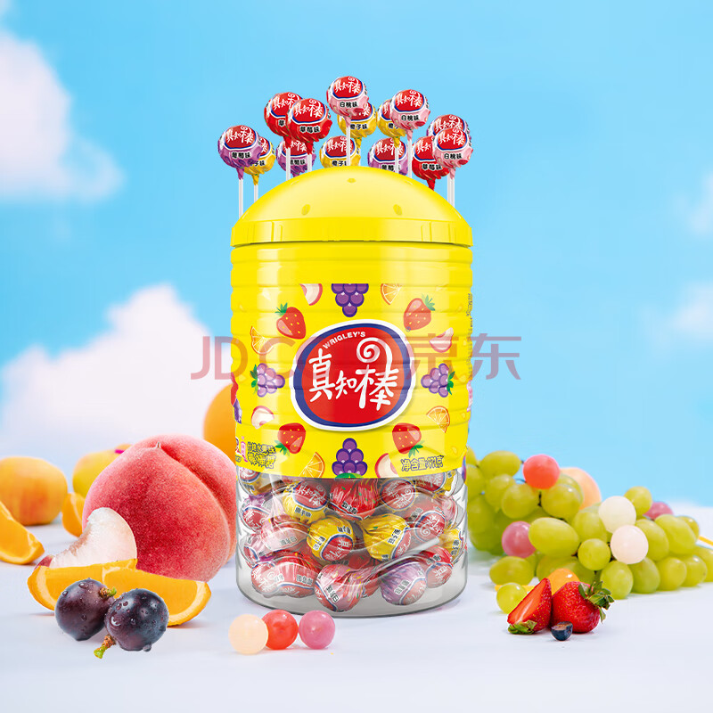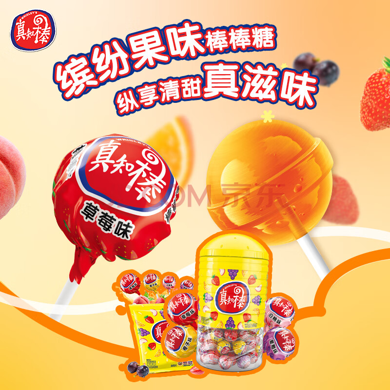 商品相册:真知棒棒棒糖 972g(约108支) 儿童棒棒糖 桶装水果糖 零食糖果 喜糖第